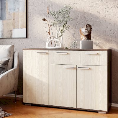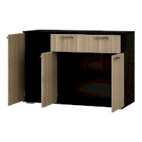 Комод Стандарт №4 – очень практичное решение для вашего интерьера. Благодаря ширине в 1200 мм, он вместит в себя большое количество предметов и вещей. Модель состоит из трех секций: верхнего выдвижного ящика, левой части с распашной дверцей и нижней секции также с распашными дверцами и спрятанными за ними полками.