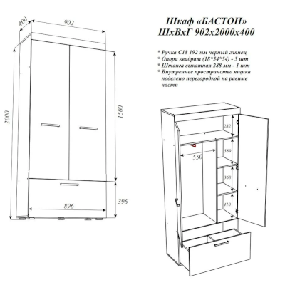 Шкаф Бастон (Эра) – товар доступен к покупке в интернет-магазине izhevskiy-dommebeli.ru. Цена – 12 452 руб. без учета доставки. Стоимость дополнительных услуг и сроки получения мебели уточняйте у менеджера. Возможен безналичный расчет, оплата по карте на сайте.