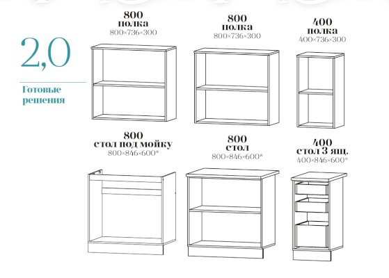 Высота нижних шкафов: 850 мм